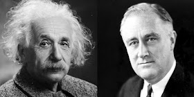 Photos : Albert Einstein en 1947 par Orren Jack Turner / Franklin D. Roosevelt en 1933 par Elias Goldensky; Library of Congress © domaine public.